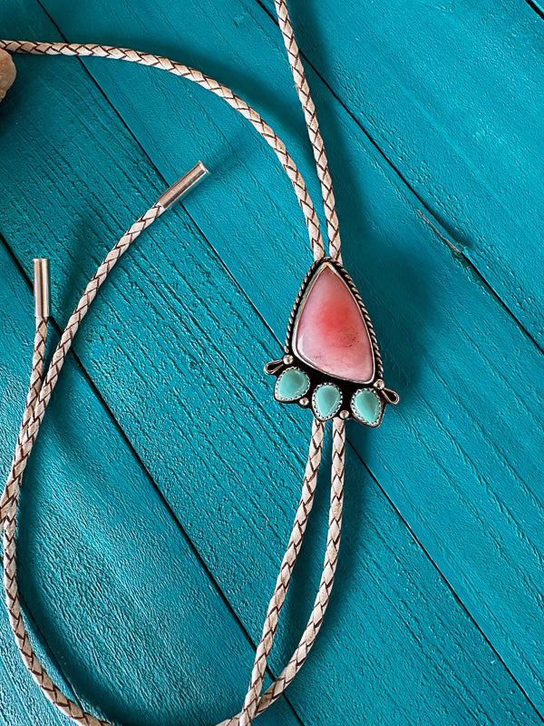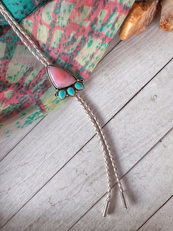 Pink Opal & Turquoise Bolo Tie