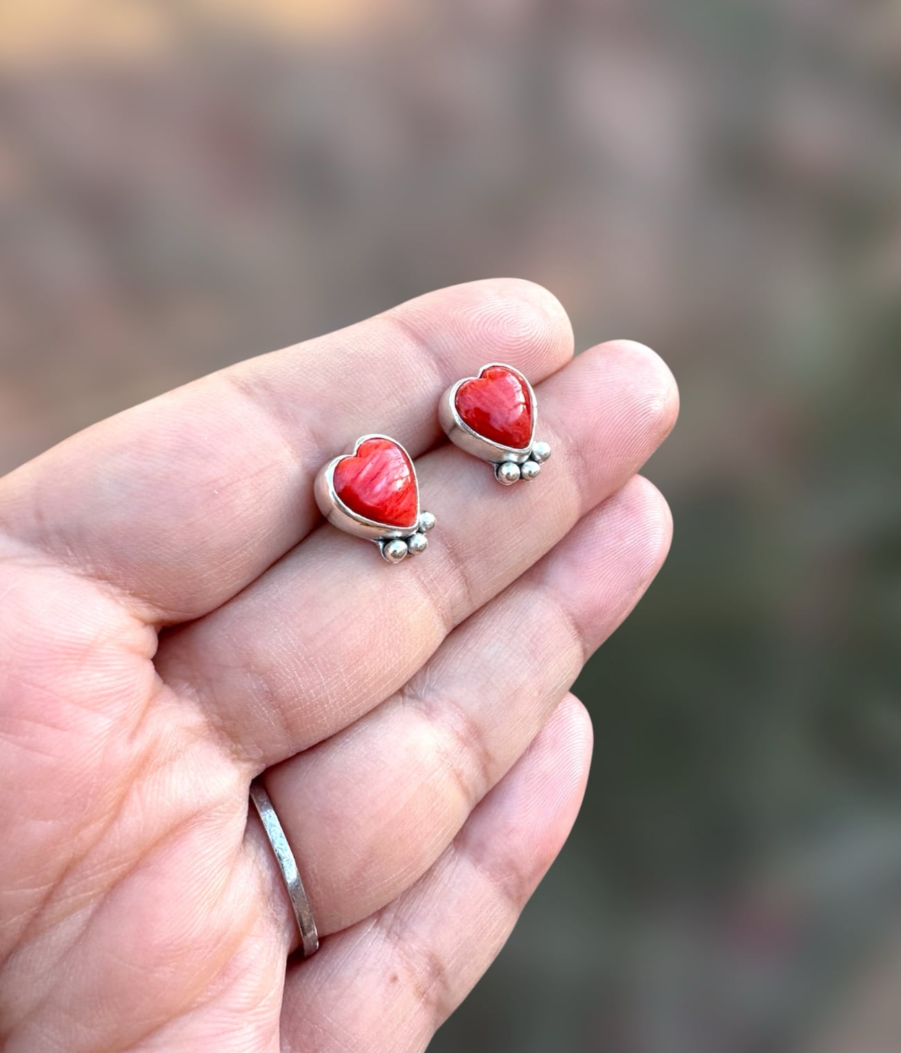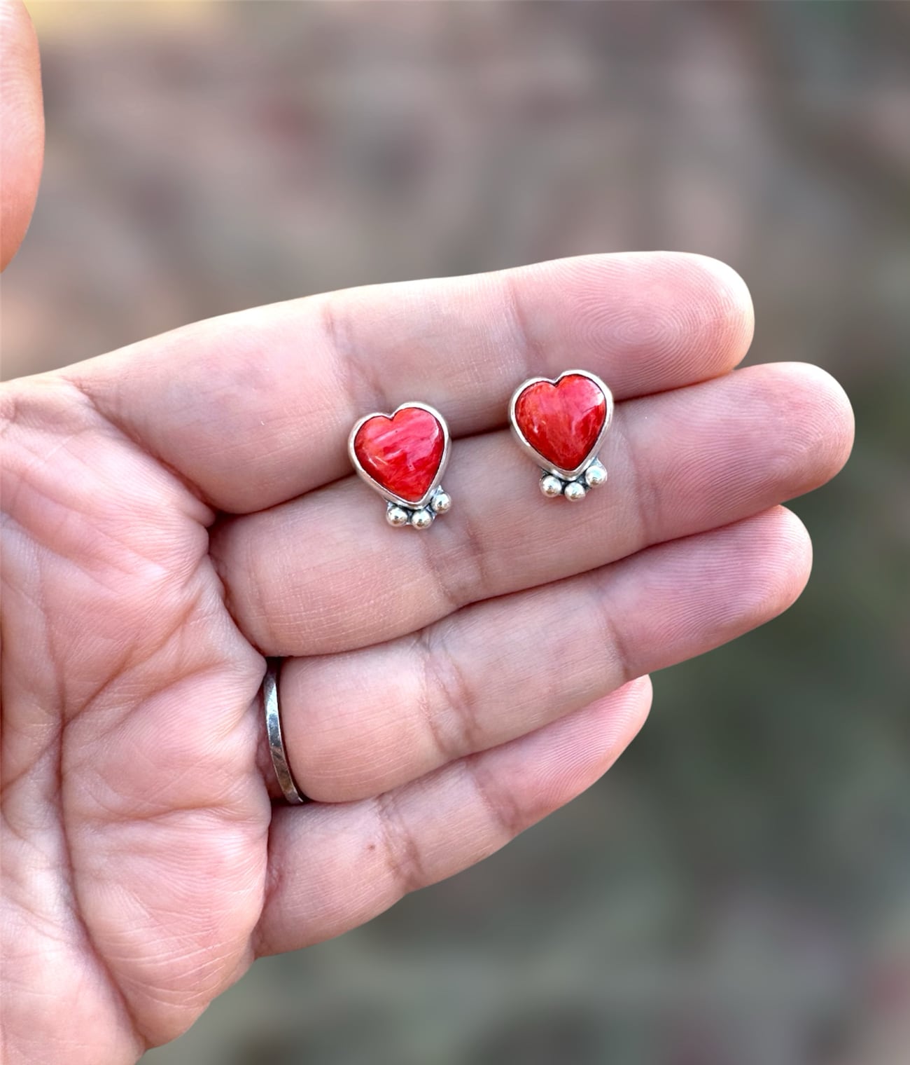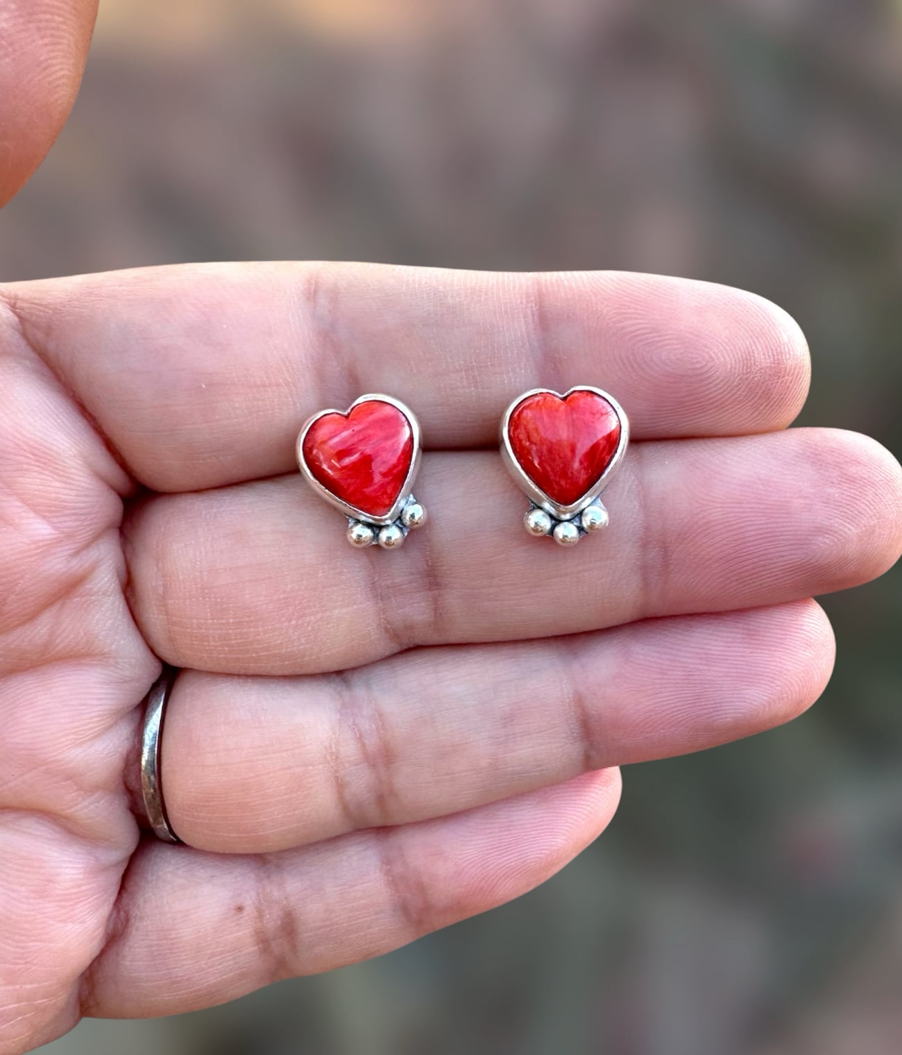 These heart stones are made from spiny oyster shell and are such a gorgeous orange - red color! The earrings are set in sterling silver and adorned with three little accent balls. Cute stud earrings!